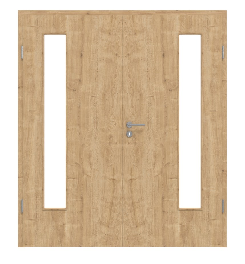 Wysokiej jakości, dwuskrzydłowe drzwi wewnętrzne z rdzeniem z pełnych płyt wiórowych i wytrzymałym wykończeniem Durat w dębie naturalnej: