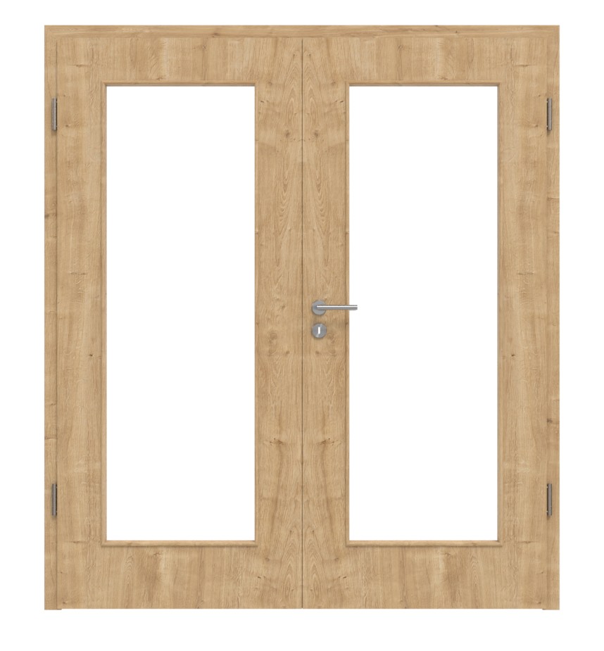 Stylowa podwójna drzwi z wkładką pełnościenną i codziennie sprawdzanym dekoracyjnym wykończeniem Durat w dębie z sękami: