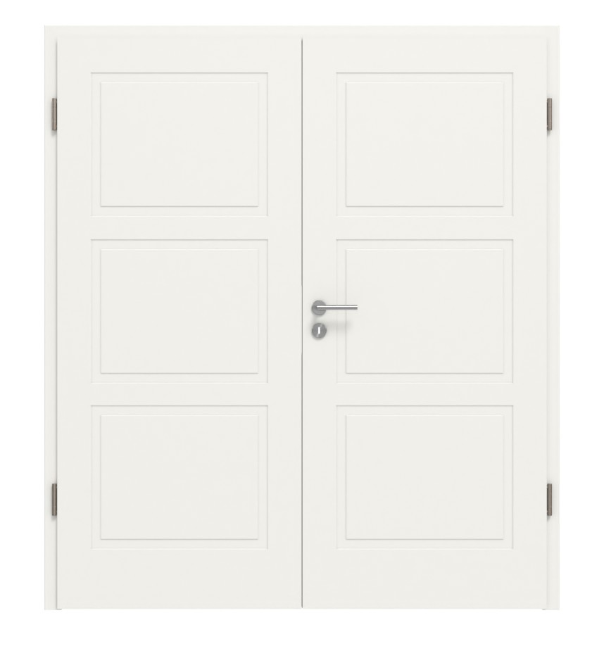 Wyposażone w rdzeń z płyty wiórowej, drzwi okazują się niezawodnie stabilne. Dzięki trójczęściowym zawiasom oba skrzydła drzwiowe pewnie osadzone są w ramie w cenie.