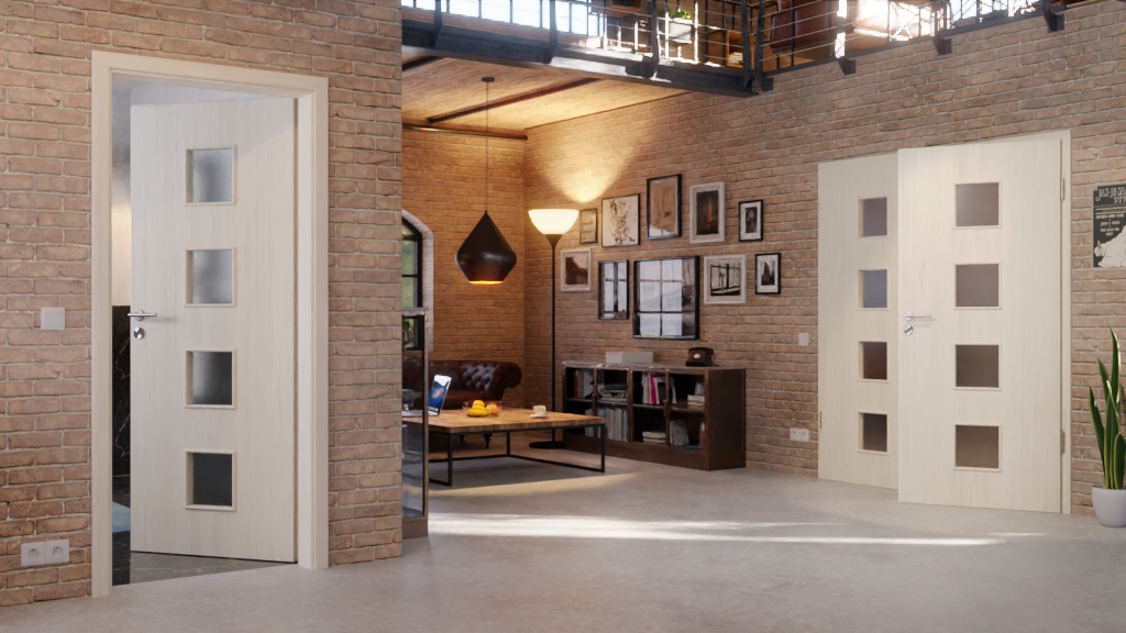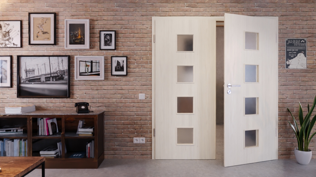 Piękne drzwi skrzydłowe z rdzeniem z pełnego wióru i łatwą w pielęgnacji powłoką Durat w kolorze lazuru modrzewiowego: