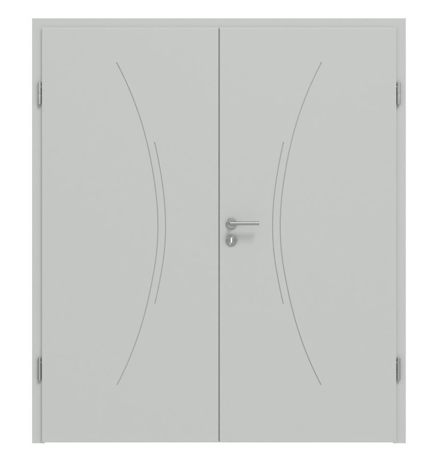 Atrakcyjne drzwi podwójne z delikatnymi szczelinami i rdzeniem z płyty wiórowej:
