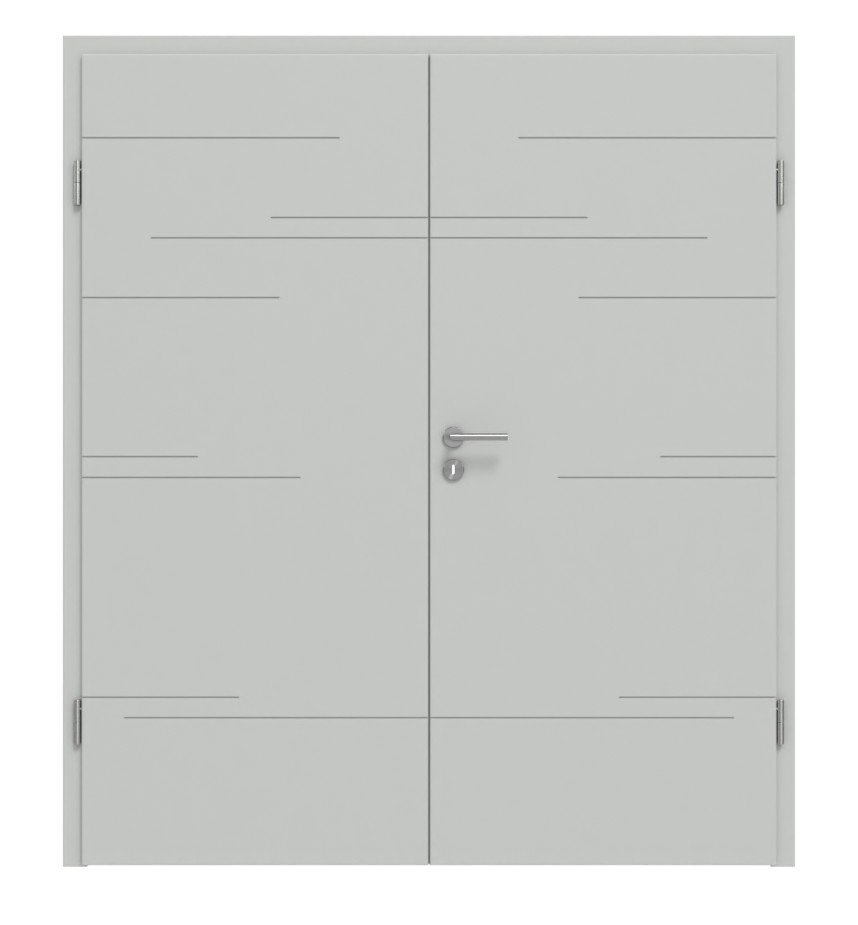 Łatwa w pielęgnacji ościeżnica firmy Huga w kolorze szary RAL 7035 do Twoich drzwi 2-skrzydłowych: