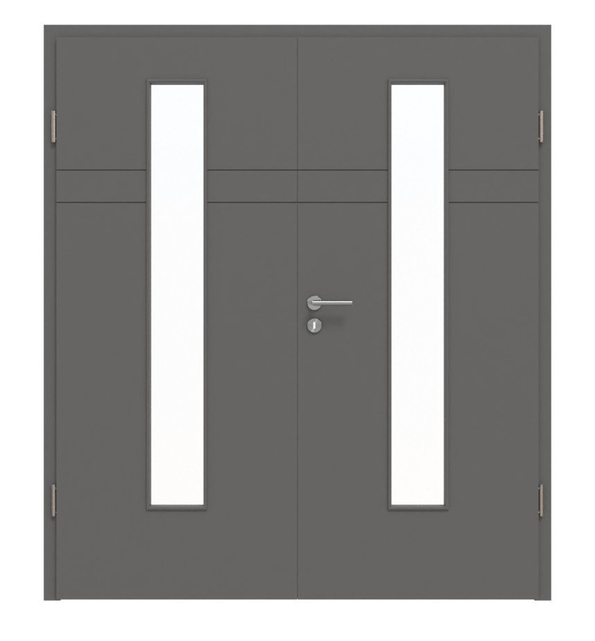 Praktyczne podwójne drzwi do wnętrz z przeszkleniami i wkładką z pełnej płyty: