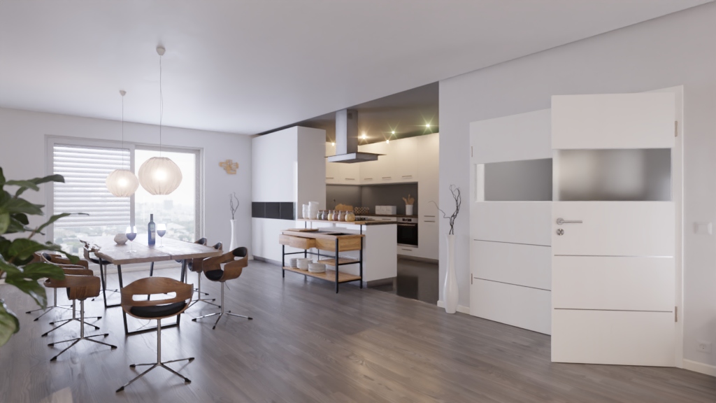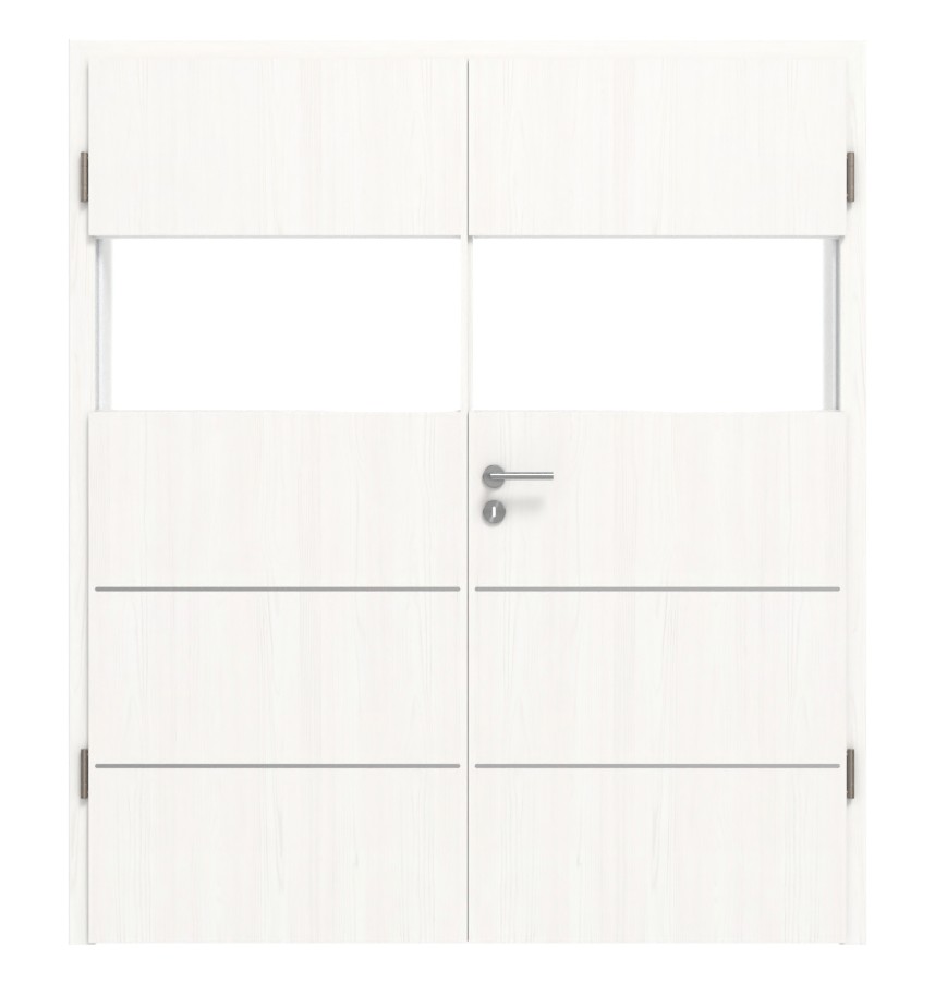 Praktyczne na co dzień wykonanie ościeżnicy firmy Huga w kolorze biel pino do Twoich drzwi dwuskrzydłowych: