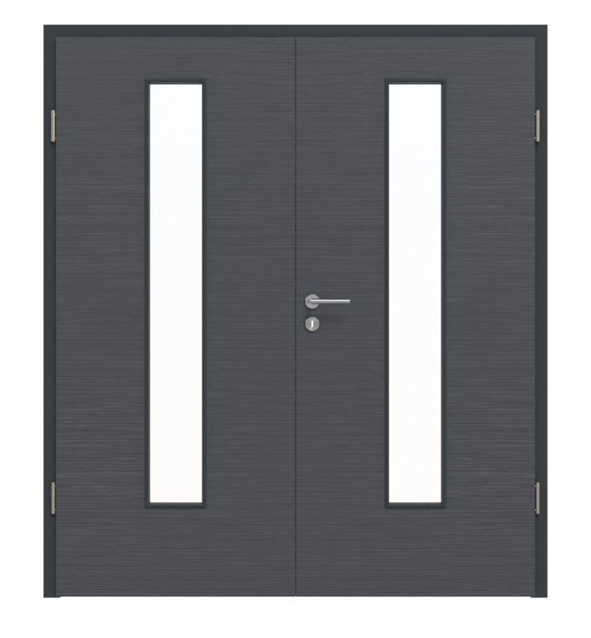 Nowoczesny zestaw drzwi i ościeżnicy: Wysokiej jakości materiały łączą się w podwójnych drzwiach Basic Versio Strukturiert Anthrazit od Huga w wymagający design.