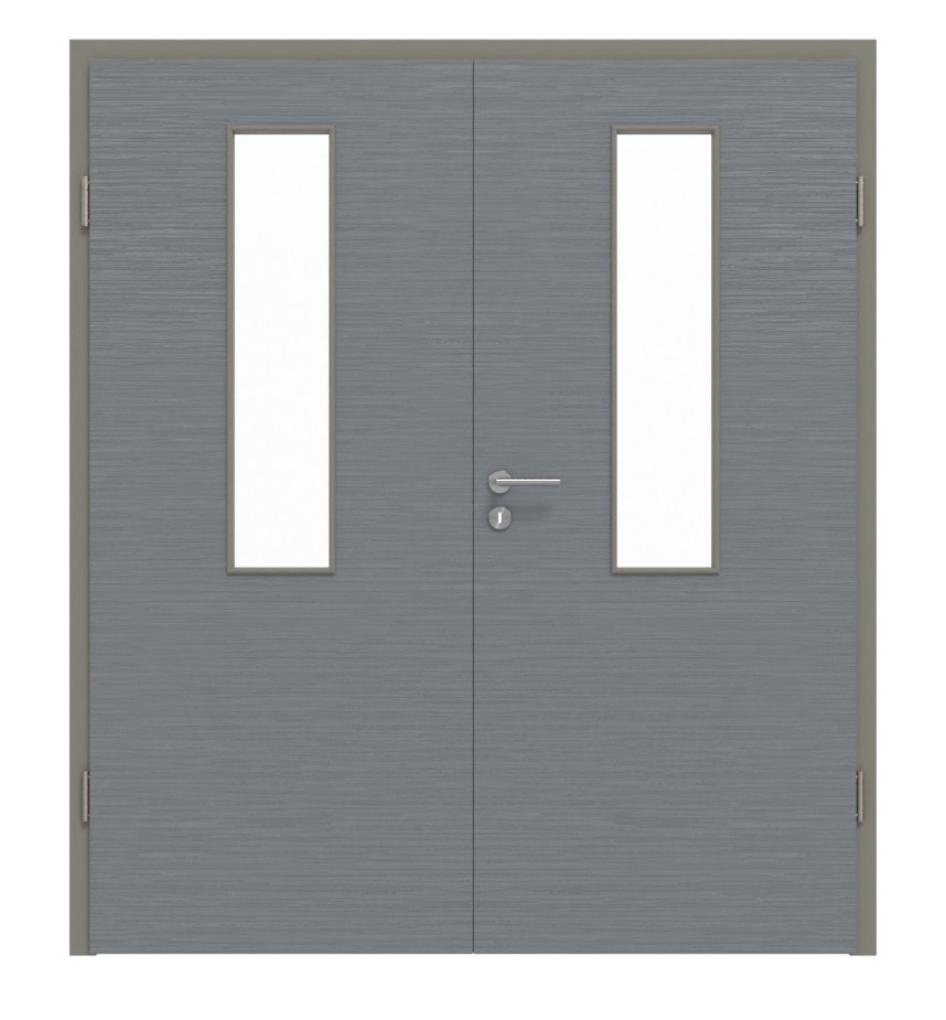 Nowoczesne podwójne drzwi z rdzeniem pełnoobciążeniowym i odporną powłoką Durat w strukturalnym odcieniu szarości Hygge: