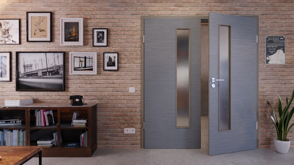 Dla nowoczesnego wnętrza: Wysokiej jakości materiały łączą się w drzwiach podwójnych Basic Versio Strukturiert Hygge szare od Huga w wymagający design.