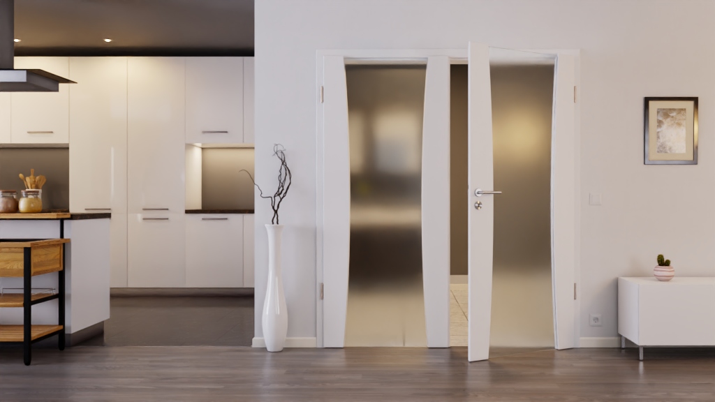 Elegancka podwójna drzwi z przeszkleniem i odporną na światło powłoką Durat: