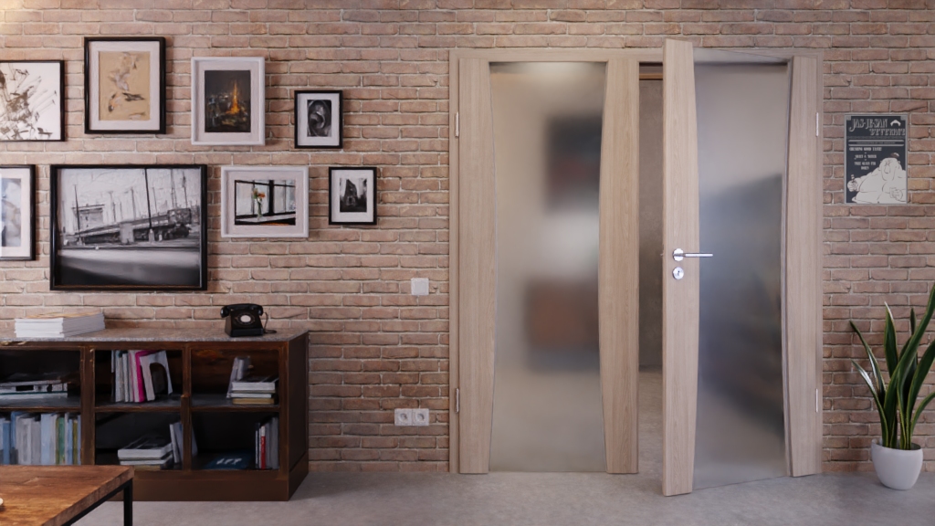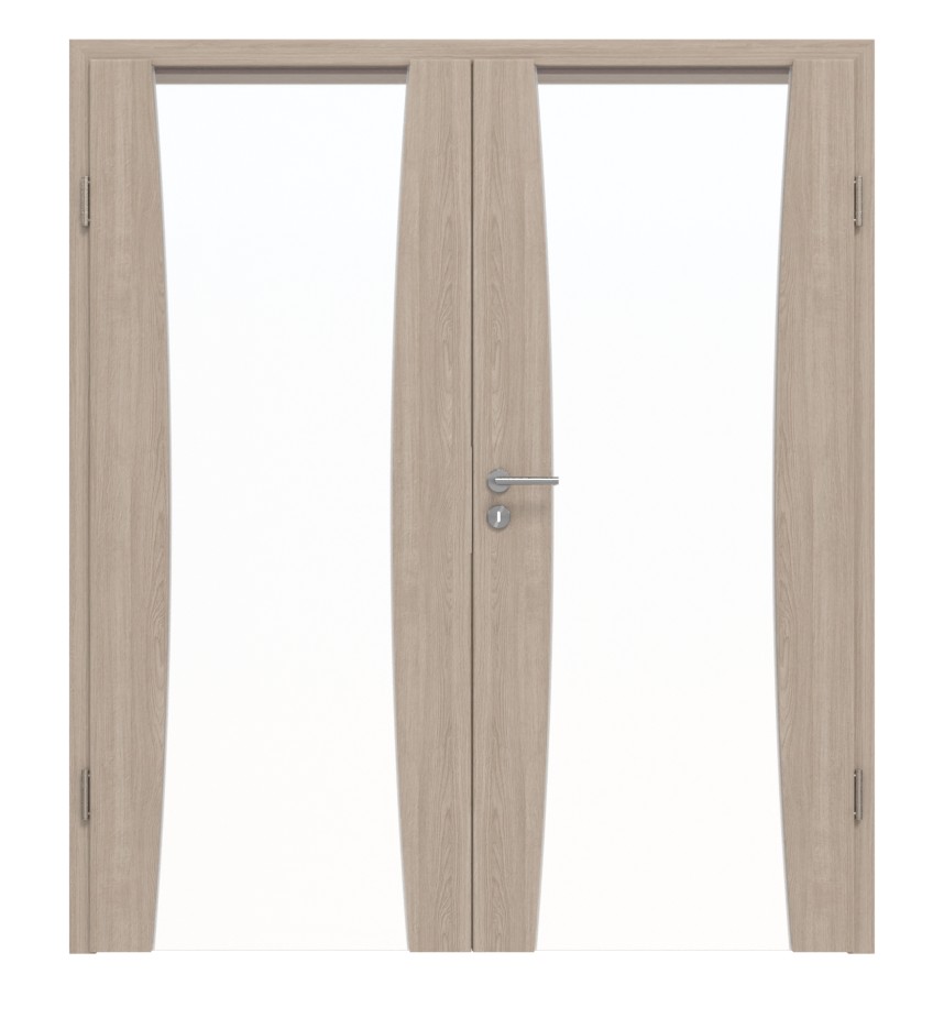Nowoczesne drzwi podwójne z segmentem szklanym i odporną na zarysowania powłoką Durat: