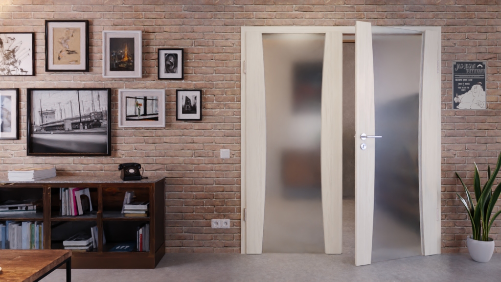 Nowoczesne drzwi podwójne z przeszkleniem i odporną na zarysowania powłoką Durat: