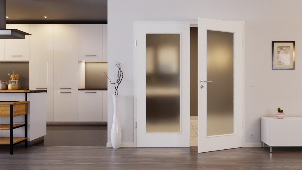 Stylowa podwójna drzwi z pełnymi wzmocnieniami i łatwą w pielęgnacji powłoką Durat w ultramatowej bieli:
