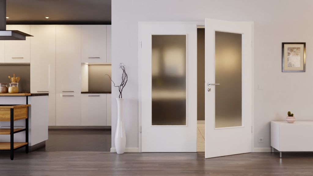 Wysokiej jakości drzwi skrzydłowe z rdzeniem z pełnej płyty i odporną na światło powierzchnią Durat w ultramatowej bieli: