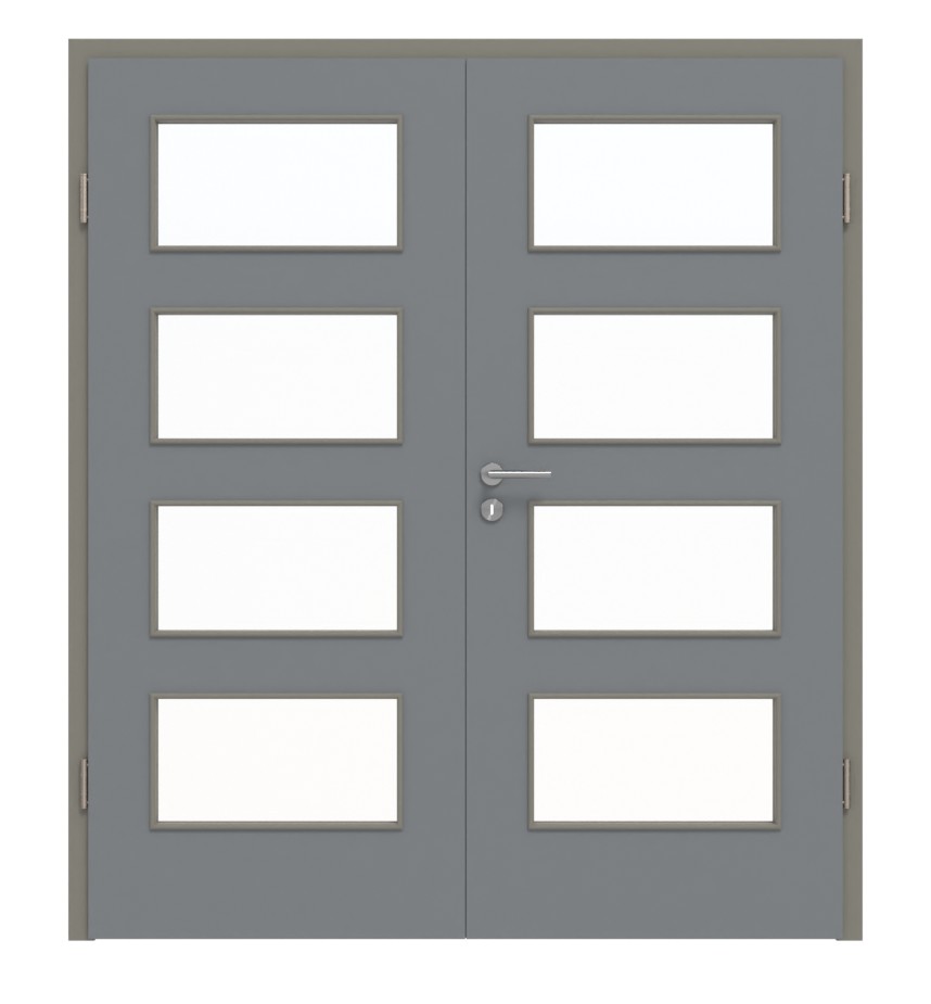 Nowoczesne drzwi podwójne z rdzeniem z pełnego wióru i wytrzymałym wykończeniem Durat w ultramatowym szarym Hygge: