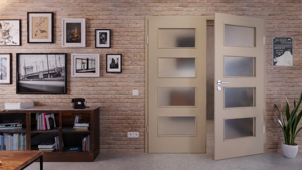 Stylowa podwójna drzwi z rdzeniem z pełnego wióra i wytrzymałą powłoką Durat w ultramatowym taupe: