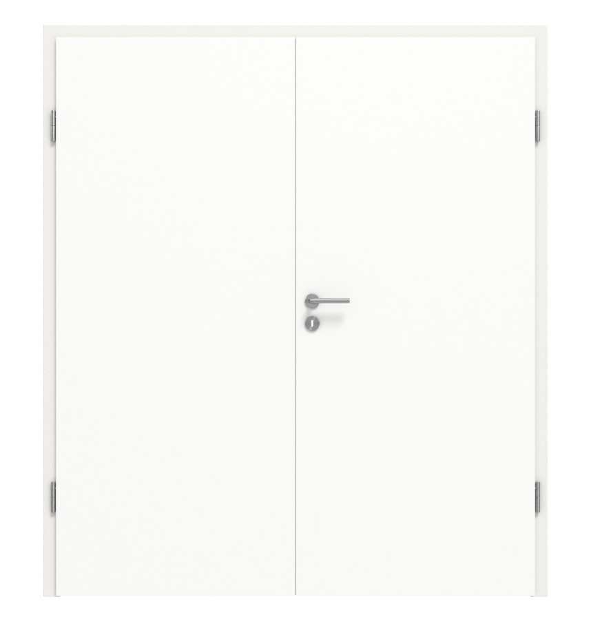 Łatwe w czyszczeniu wykonanie ościeżnicy firmy Huga w kolorze biel ultramatowa do Twoich drzwi pokojowych 2-skrzydłowych: