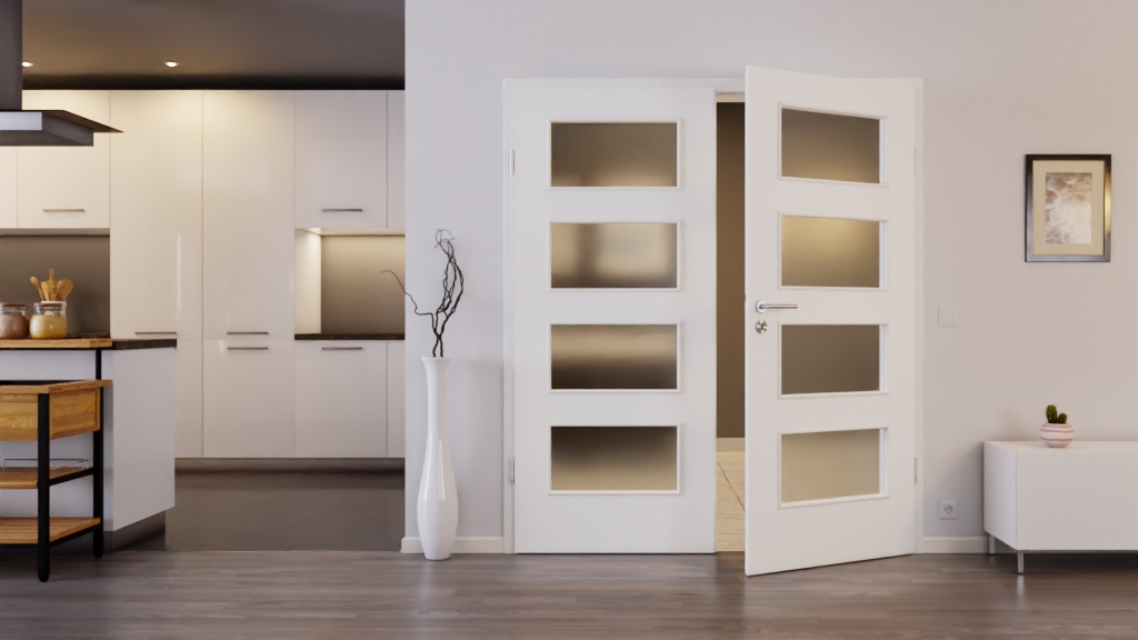 Stylowa drzwi podwójne z rdzeniem pełnoobciążeniowym i wytrzymałą powłoką Durat w ultramatowej bieli: