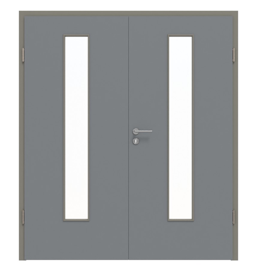 Wysokiej jakości drzwi podwójne z rdzeniem z pełnej płyty i łatwą w pielęgnacji powierzchnią Durat w ultramatowym szarym Hygge: