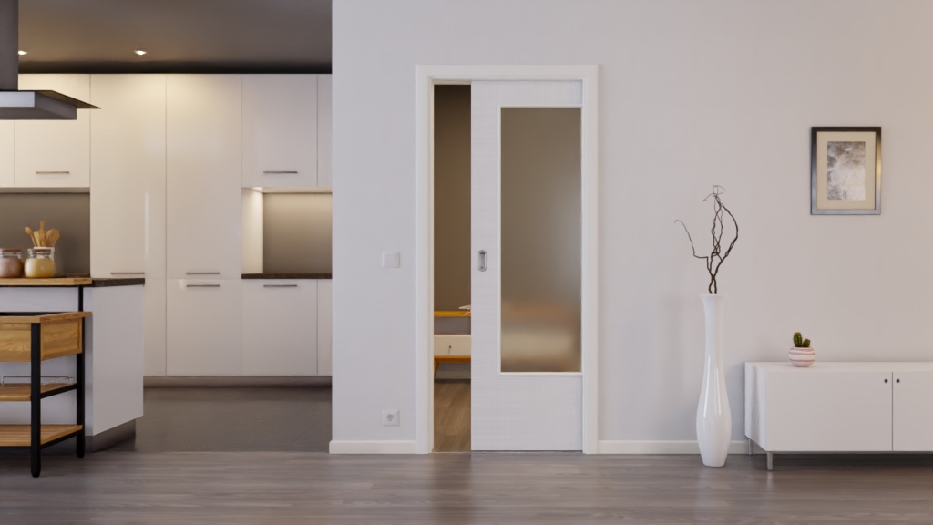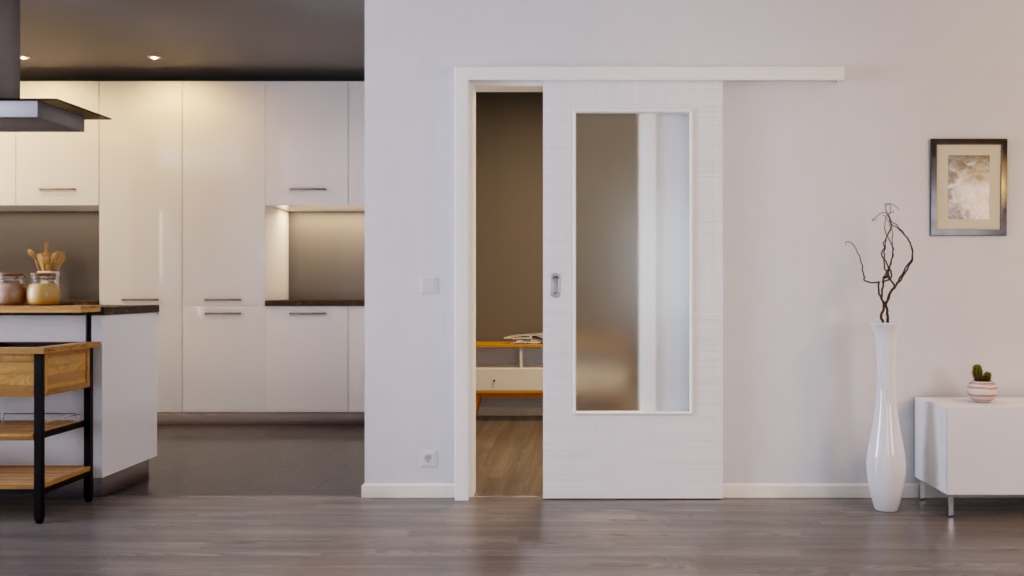 Eleganckie drzwi przesuwne z fakturowaną powierzchnią Durat: