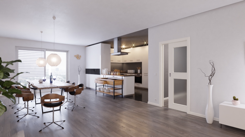 Praktyczne drzwi przesuwne z rdzeniem z pełnej płyty i gładkim wykończeniem lakierem w białym kolorze podobnym do RAL 9010: