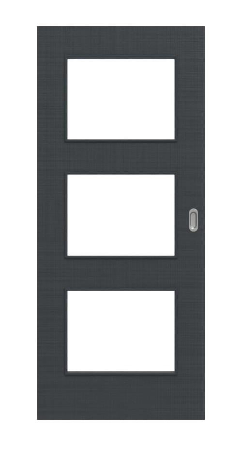 Trzy równomierne wycięcia szklane umożliwiają obfity dopływ światła do pomieszczenia. Powierzchnia Versio-Durat zachwyca subtelną tekstylnością, której towarzyszy wyczuwalna struktura. Jej spokojny odcień antracytowy oraz przyjemna w dotyku powierzchnia nadają każdemu pomieszczeniu elegancki akcent. Dodatkowo, powłoka jest niezwykle łatwa w pielęgnacji i odporna na ścieranie oraz uderzenia.