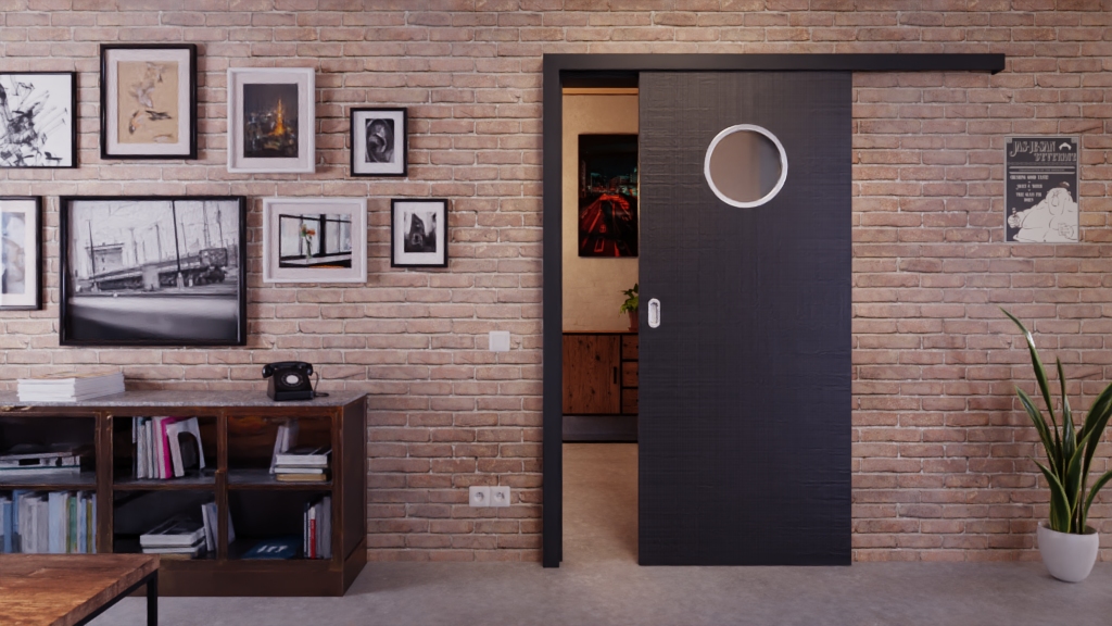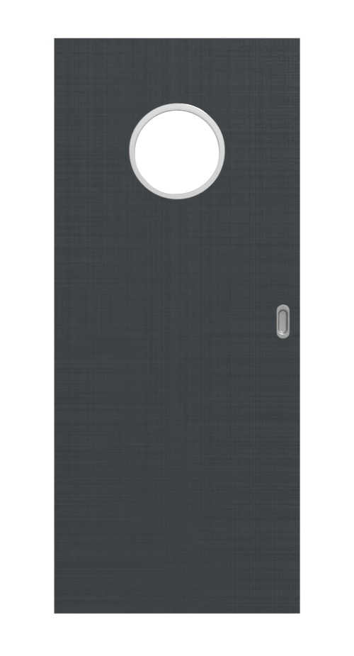 Łatwa w pielęgnacji drzwi przesuwne w kolorze antracytowym z okrągłym otworem świetlnym:
