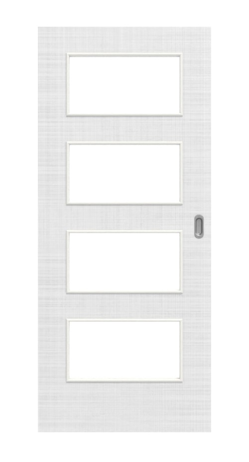 Elegancka drzwi przesuwne z teksturowaną powierzchnią Durat i czterema otworami świetlnymi: