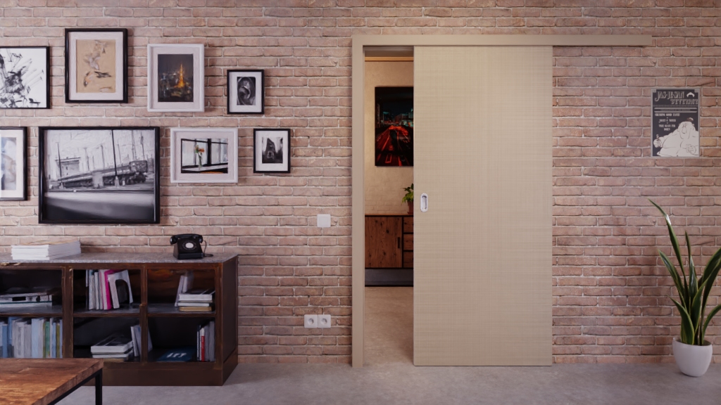 Eleganckie drzwi przesuwne z teksturowaną powierzchnią Durat i rdzeniami rurkowymi: