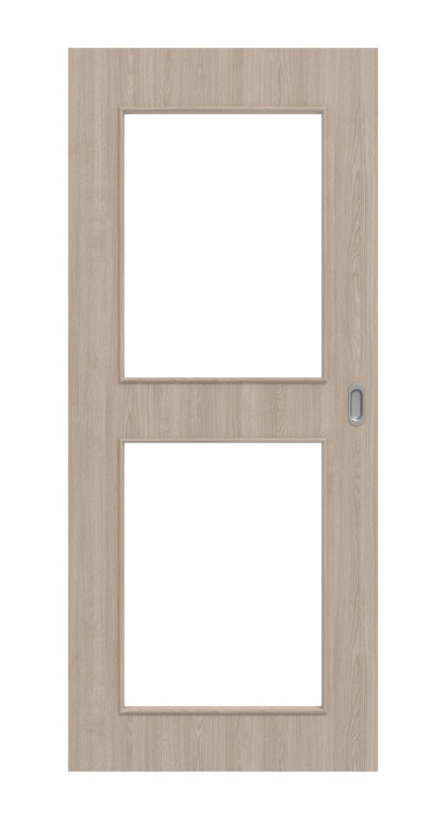 Dwa przestronne przeszklenia zdobią skrzydło drzwi i wpuszczają dużo dodatkowego światła do wnętrza. Urokliwy rysunek drewna przebiega wzdłuż dekoru dębu szarego. Ponadto powierzchnia Durat zapewnia łatwą pielęgnację i trwałą stabilność, która bez trudu sprosta codziennym wymaganiom.