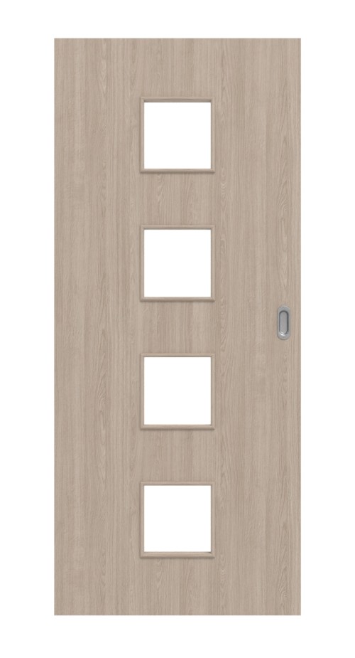 Centrum pięknego designu stanowią trzy równomierne otwory na światło z otaczającymi je listwami szklanymi. Spokojne, podłużne usłojenie kształtuje harmonijną dekorację drewnianą w kolorze dębu szarego. Ponadto powierzchnia Durat zapewnia łatwą w pielęgnacji obsługę oraz trwałą stabilność, która bez trudu sprosta codziennym wymaganiom.