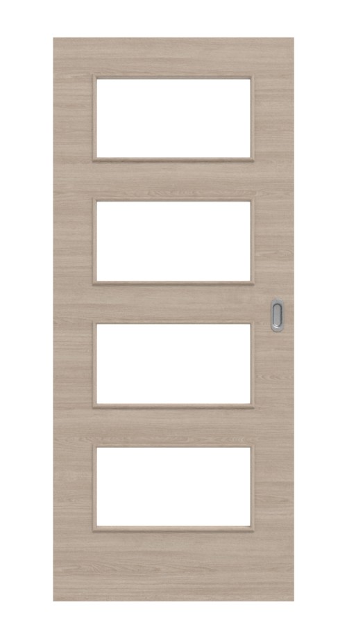 Dzięki czterem dużym przeszkleniom Twoje pomieszczenie zyska dodatkowe światło. Na dekorze Dąb Szary Poziomy widoczne są delikatne usłojenia w orientacji poziomej. Łatwa w pielęgnacji powłoka Durat zachwyca również swoją odpornością na zarysowania i uderzenia.
