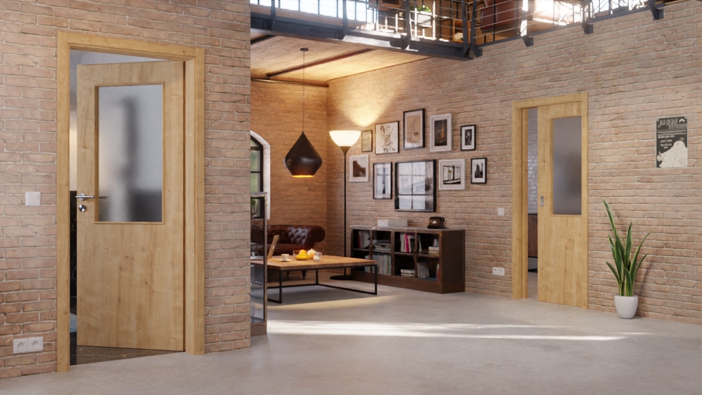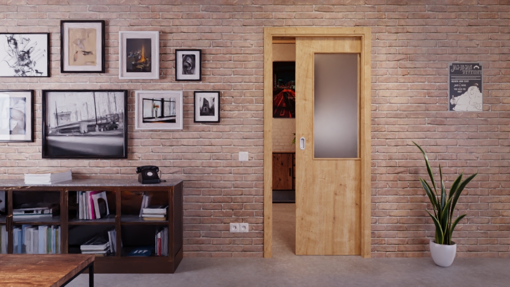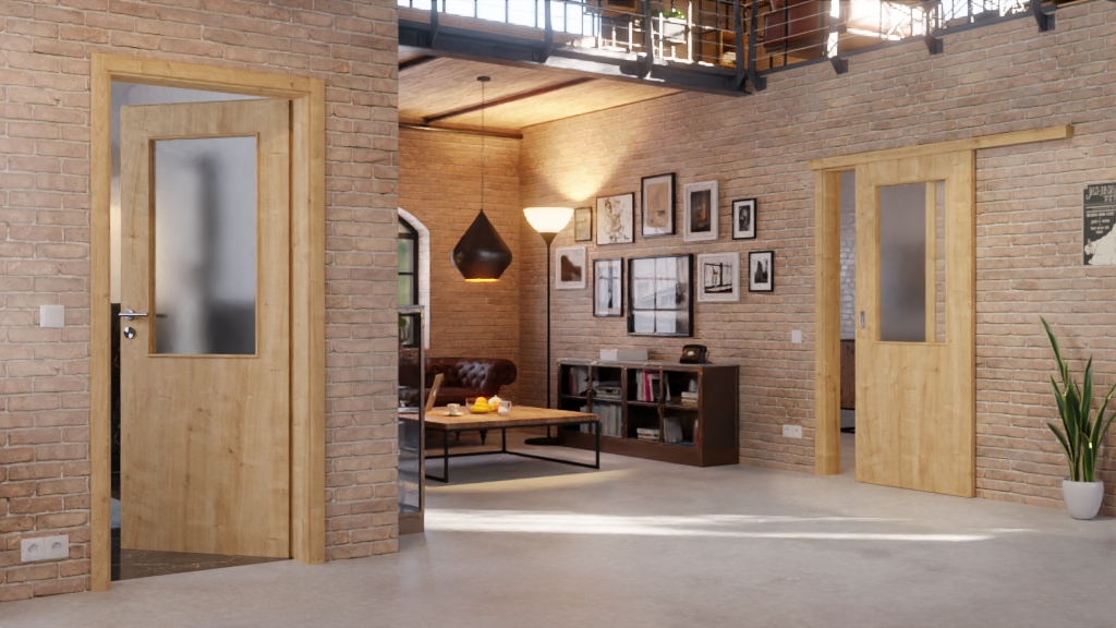 Stylowe drzwi przesuwne z wkładką z pełnej płyty i odporną na ścieranie powierzchnią Durat: