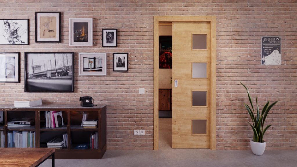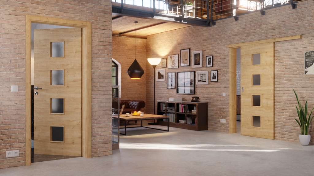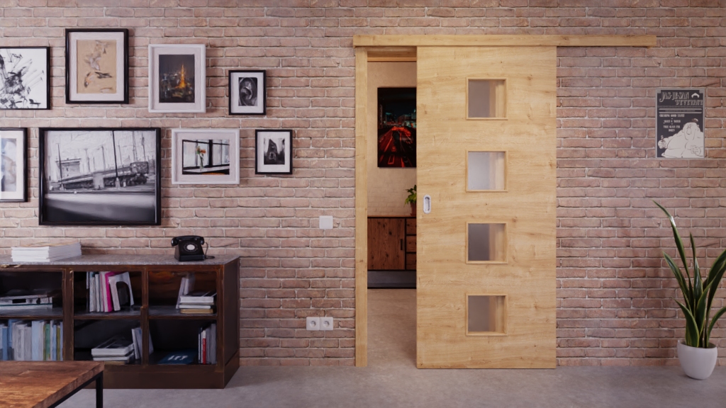 Ponadczasowe drzwi przesuwne z wkładką pełnoformatową i odporną na uderzenia powłoką Durat: