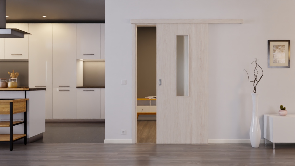Nowoczesne drzwi przesuwne z pełnymi wzmocnieniami i odporną na światło powłoką Durat: