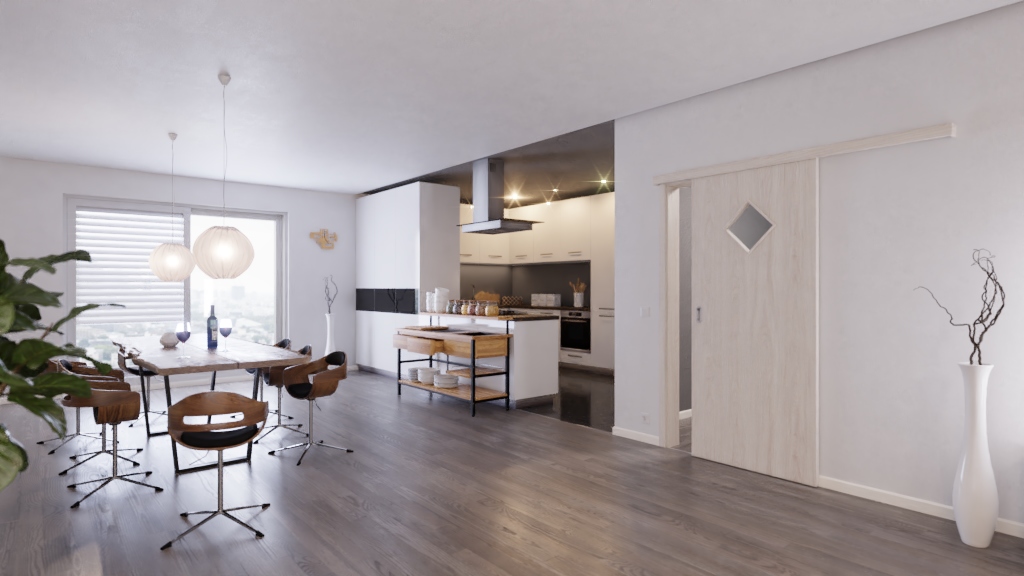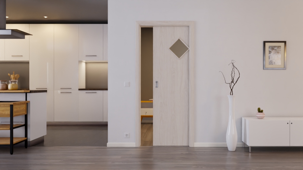 Nowoczesne drzwi przesuwne z wkładką pełnoobciążeniową i odporną na ścieranie dekoracją Durat: