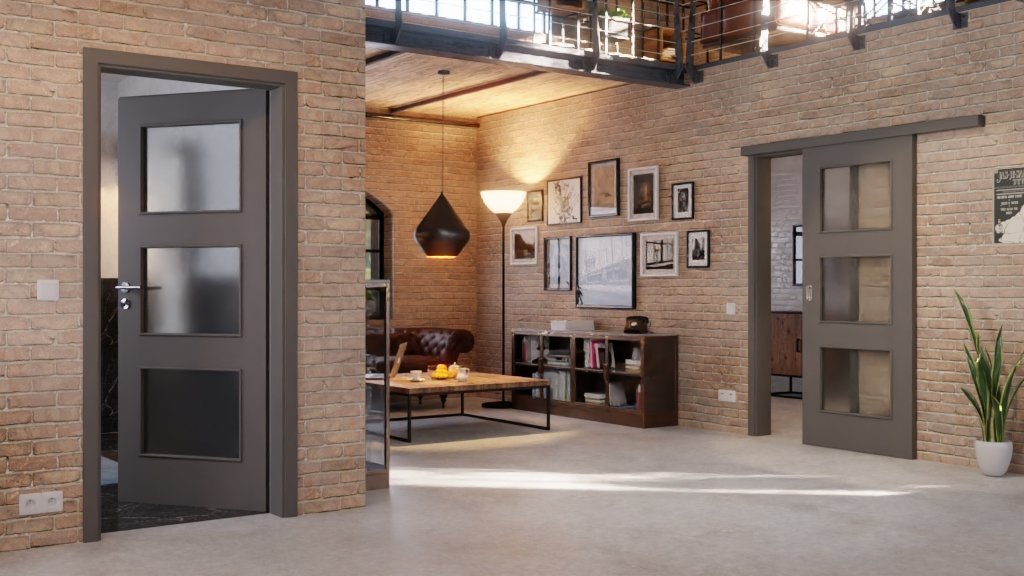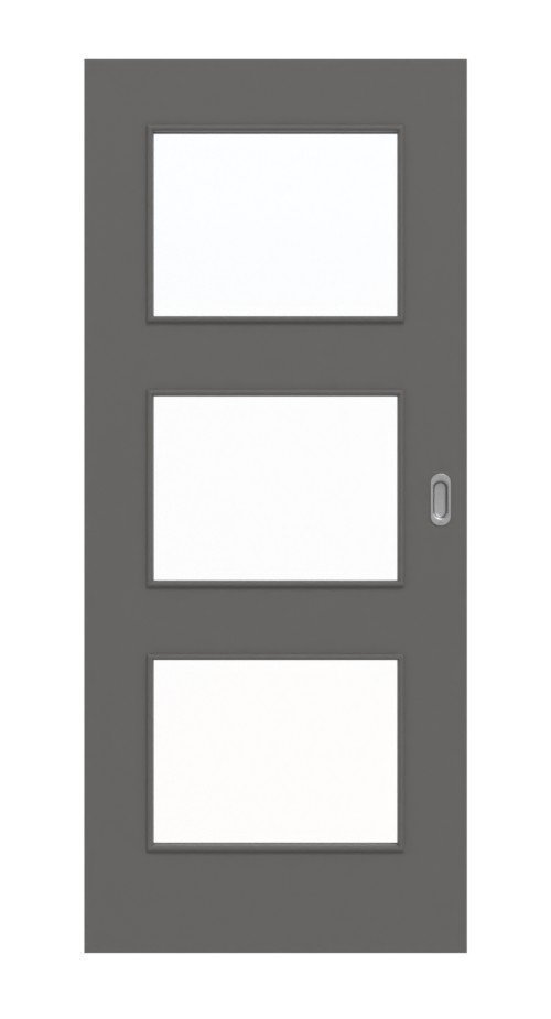 W centrum zapraszającego designu znajdują się trzy duże przeszklenia, otoczone delikatnymi listwami szklanymi. Równomierne lakierowanie w odcieniu Hygge Szary tworzy harmonijne wykończenie.