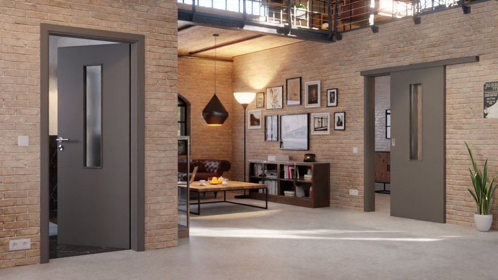 Nowoczesny wygląd zapewnia smukłe przeszklenie w górnej części skrzydła drzwi. Trendowy design uzupełnia wysokiej jakości lakier w odcieniu Hygge Szary.