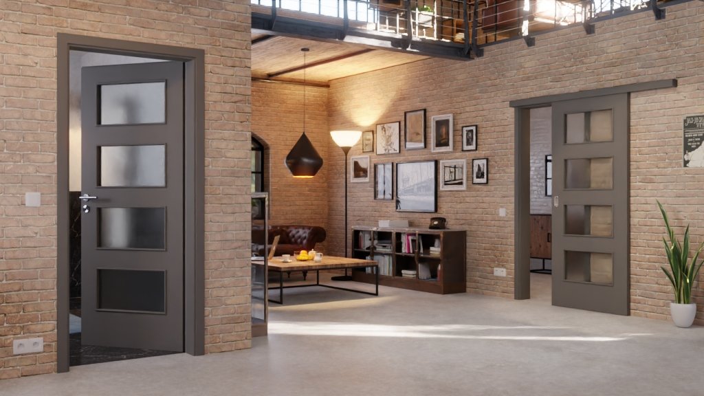 Cztery szerokie przeszklenia z okalającymi listwami szklanymi umożliwiają obfity dopływ światła do Twojego pomieszczenia. Nowoczesny design wspierany jest eleganckim wykończeniem lakierem w kolorze Hygge Szarym.