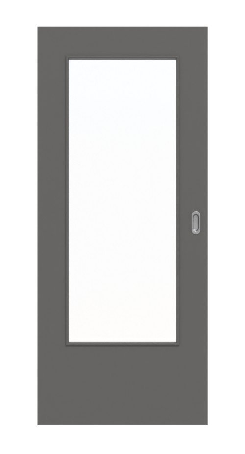 Dla korytarza bez okien duże przeszklenie z nałożonymi listwami szklanymi jest korzystne. Ale także inne pomieszczenia zyskują dzięki temu modelowi dużo światła. W jednolitej kolorystyce w Hygge Szarym wykończenie lakierowane podkreśla nowoczesny design.