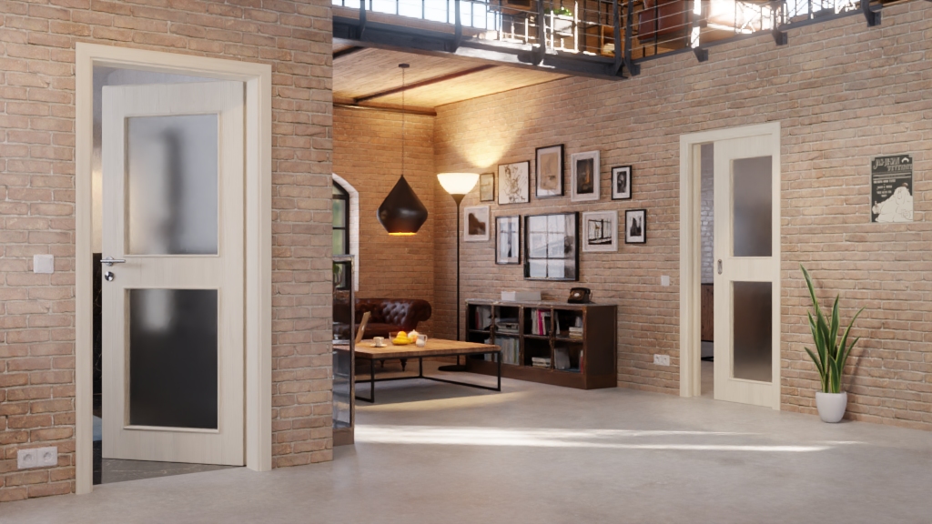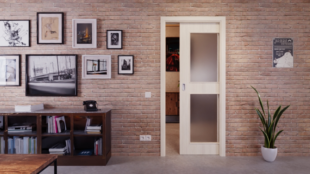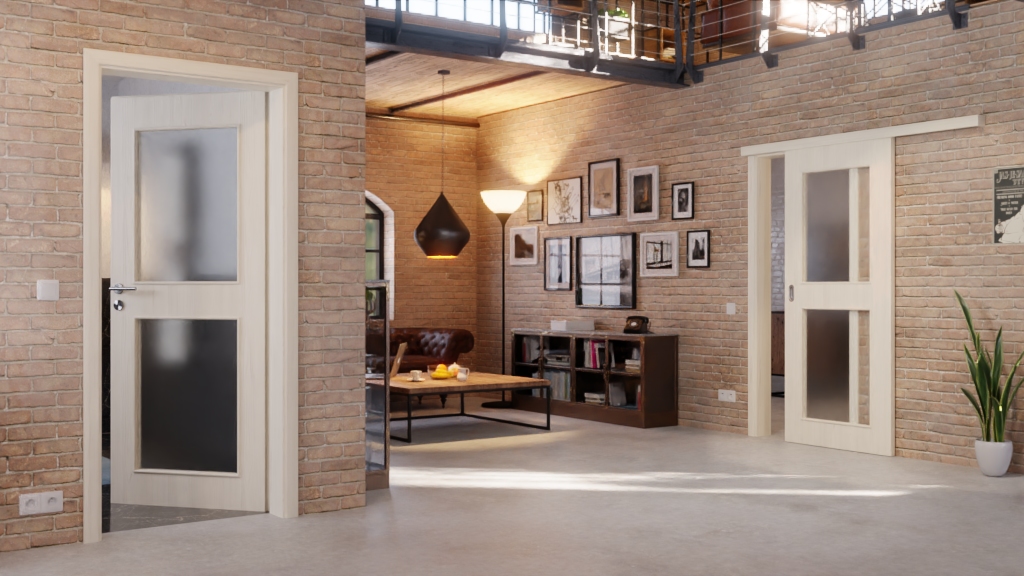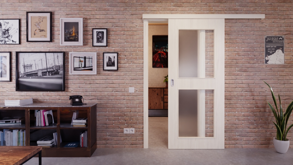 Urokliwa drzwi przesuwne z wkładką pełnoformatową i odporną na uderzenia dekoracją Durat: