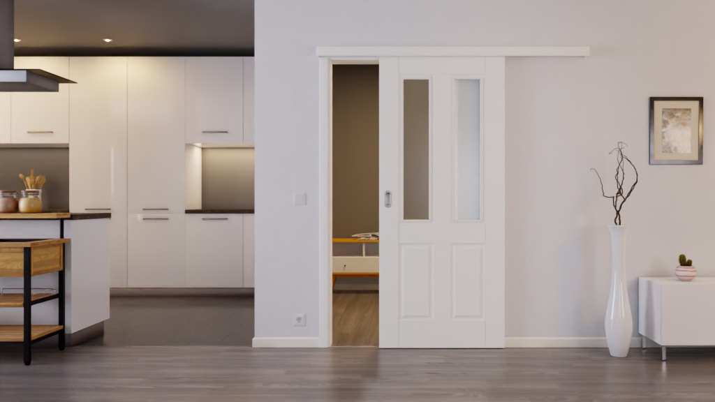 Trwałe drzwi przesuwne z gładką białą powłoką lakierniczą: