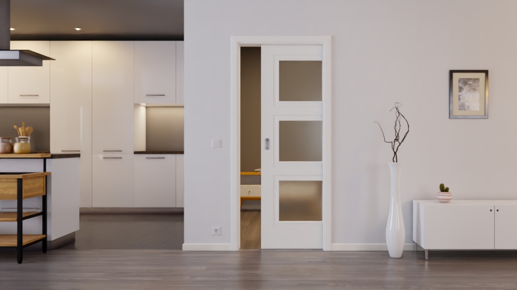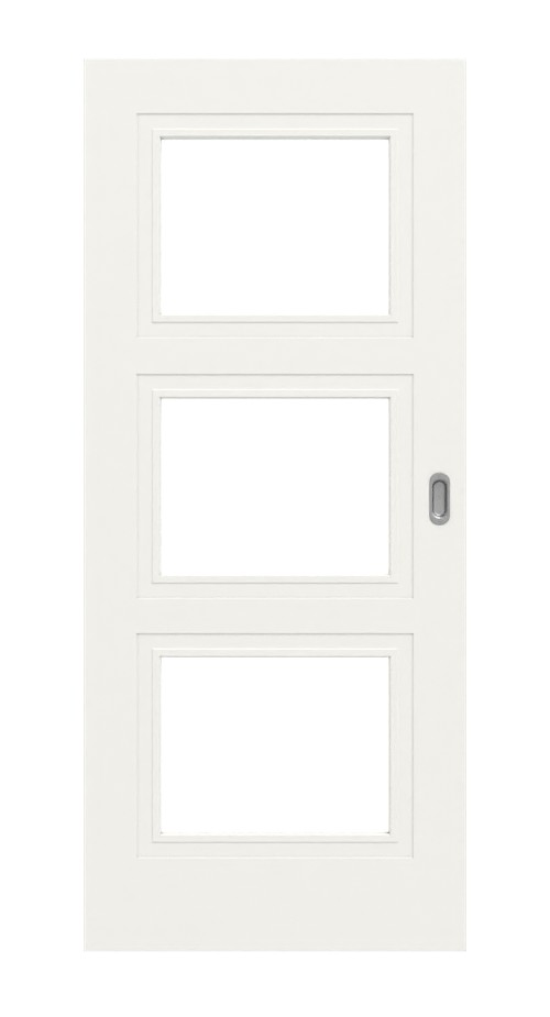 Solidne drzwi przesuwne z otworami świetlnymi i frezowanym wyglądem ramy: