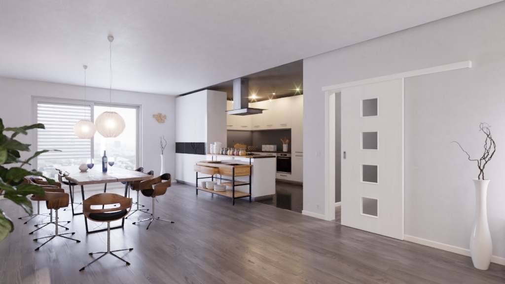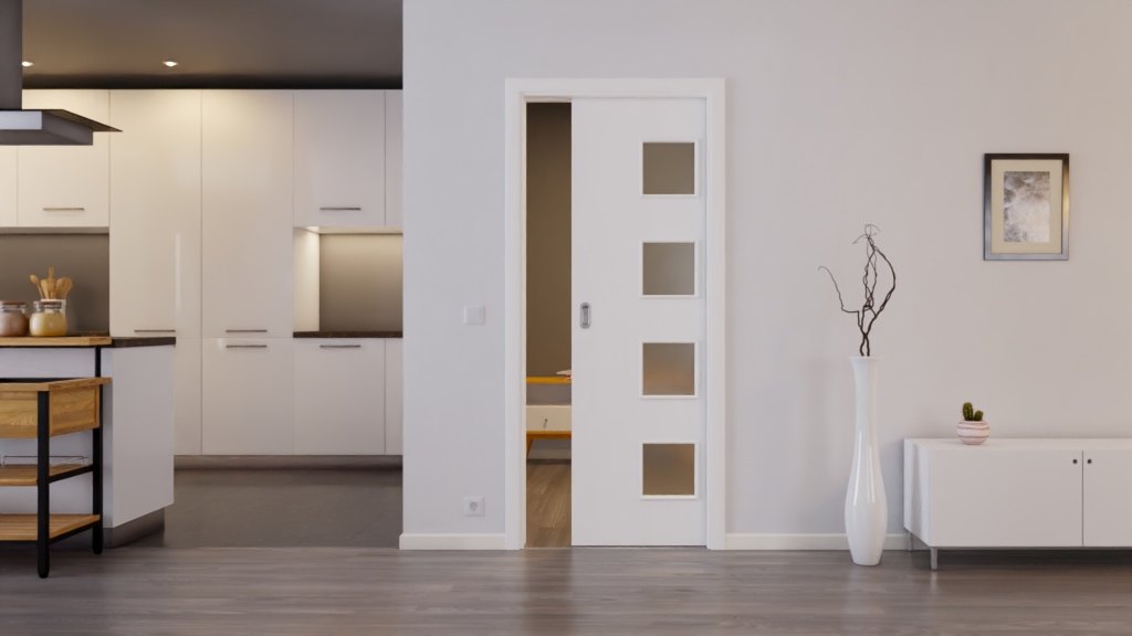 Ponadczasowe drzwi przesuwne Huga z pełnymi wzmocnieniami i odporną na zarysowania okleiną Durat: