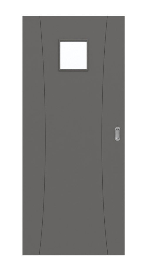 Starannie wykonane drzwi przesuwne z rdzeniem z pełnej płyty i harmonijnym lakierowaniem w kolorze Hygge szarym: