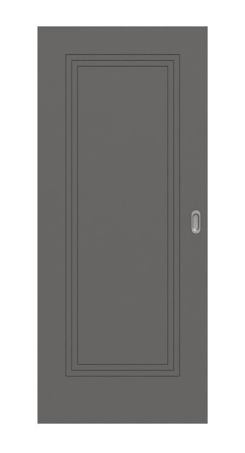 Skrzydło drzwiowe standardowo wykonane jest z rdzeniem z rur. W menu konfiguracji masz możliwość wyboru jeszcze stabilniejszej warstwy środkowej z pełnego wióru. Połączenie owalnej muszki uchwytowej i rowka drzwi przesuwnej, które są częścią zestawu, umożliwia wygodne otwieranie i zamykanie drzwi.