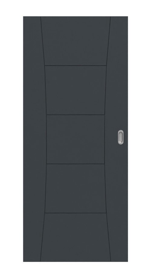 Drzwi przesuwne najwyższej jakości z rdzeniem z płyty wiórowej i harmonijnym lakierowaniem w kolorze antracytowym podobnym do RAL 7016: