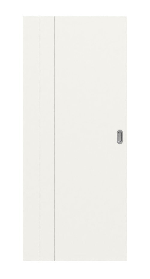 Dwie filigranowe linie frezowania elegancko przebiegają wzdłuż długości skrzydła drzwi. Powierzchnia pokryta jest jednolitym lakierem, który w odcieniu białym harmonijnie wpasowuje się w przestrzeń.