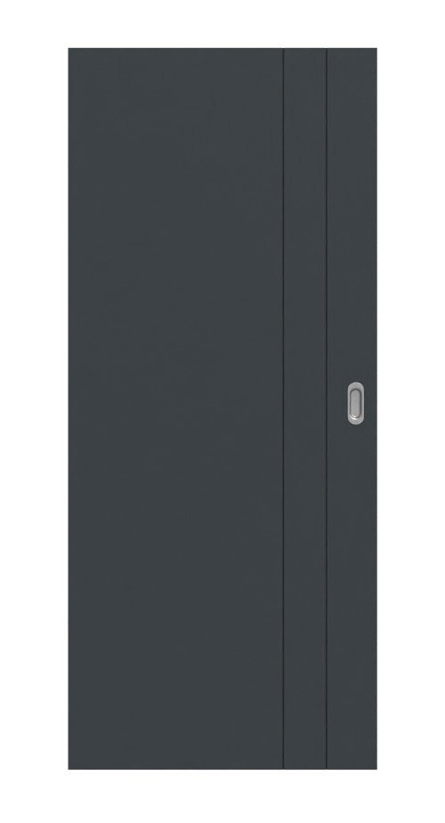 Nowoczesne drzwi przesuwne z rdzeniem z płyty wiórowej i harmonijnym lakierowaniem w kolorze antracytowym podobnym do RAL 7016: