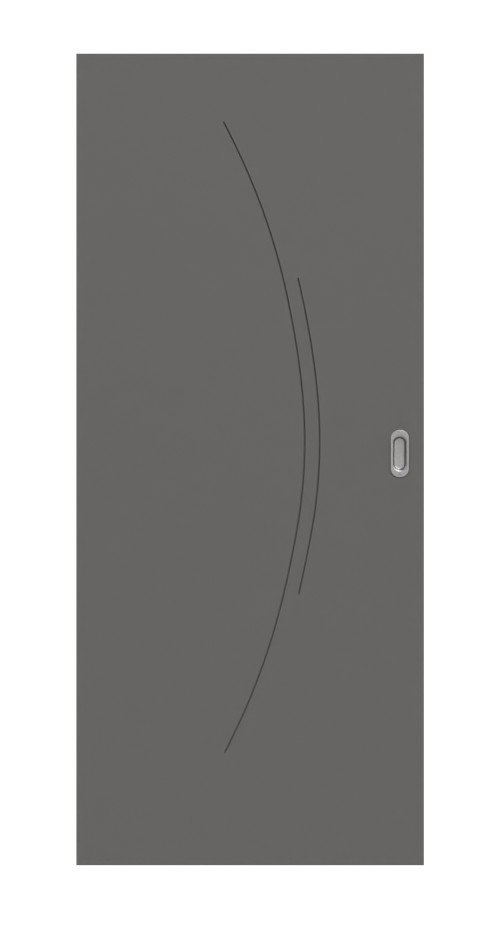 Solidne drzwi przesuwne z rdzeniem z płyty wiórowej i harmonijnym lakierowaniem w kolorze Hygge szarym: