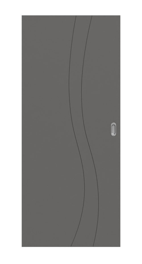 Dwie delikatnie falujące V-fugi biegną pionowo wzdłuż długości skrzydła drzwi, wprowadzając świeży powiew do Twoich pomieszczeń. Powierzchnia pokryta jest jednolitym lakierem, który w odcieniu Hygge szary harmonijnie wkomponowuje się w przestrzeń.
