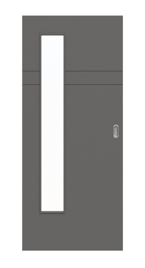 Stabilne drzwi przesuwne z pełnymi wzmocnieniami i harmonijnym lakierowaniem w kolorze Hygge szarym: